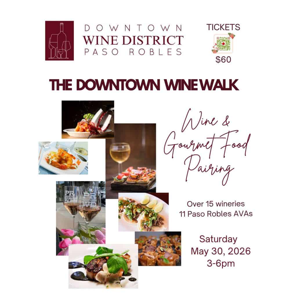 05/30/2026 @ 3:00 PM – 6:00 PM – Paso Robles Downtown Wine District presents: SPRING WINE WALK Come meander around...