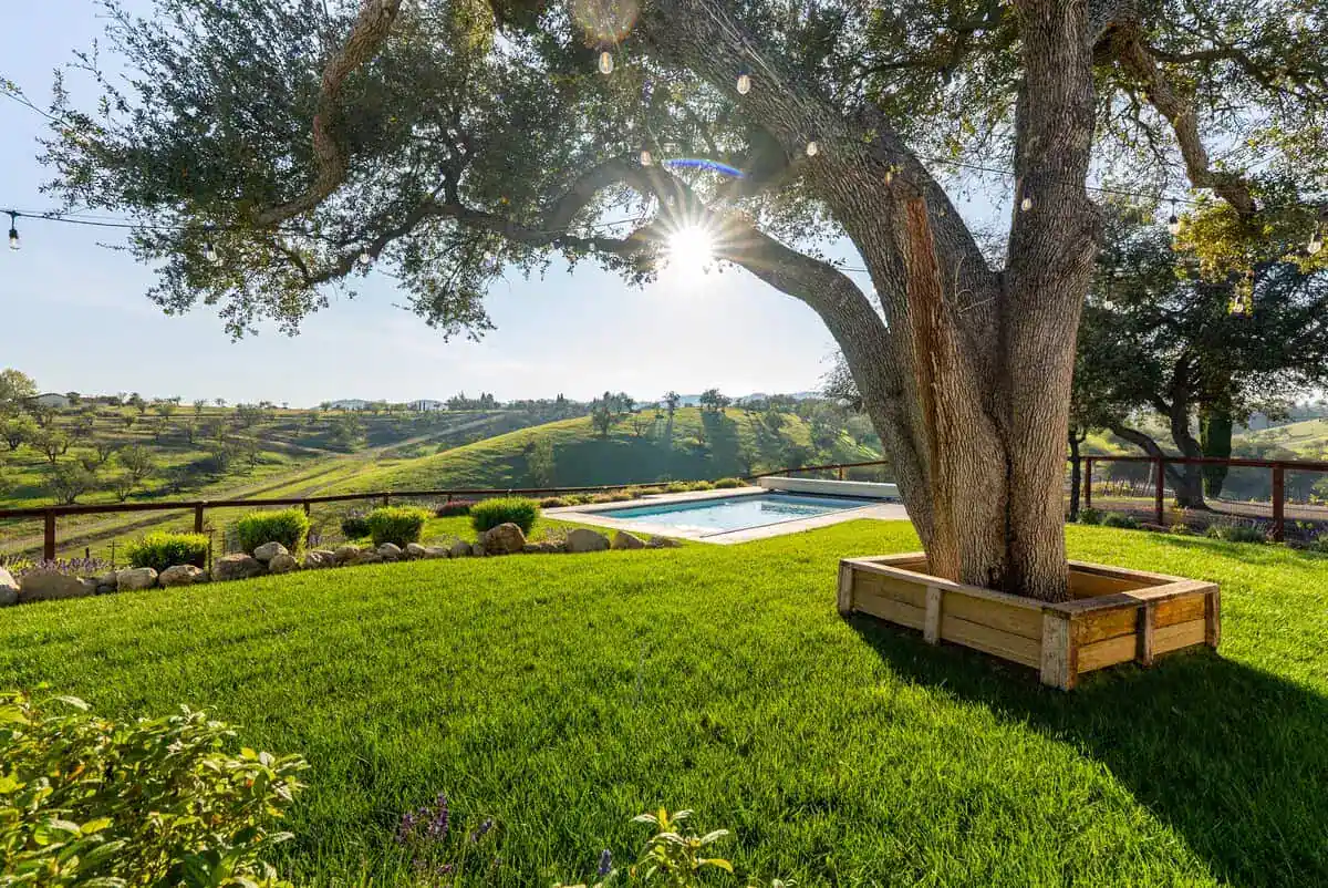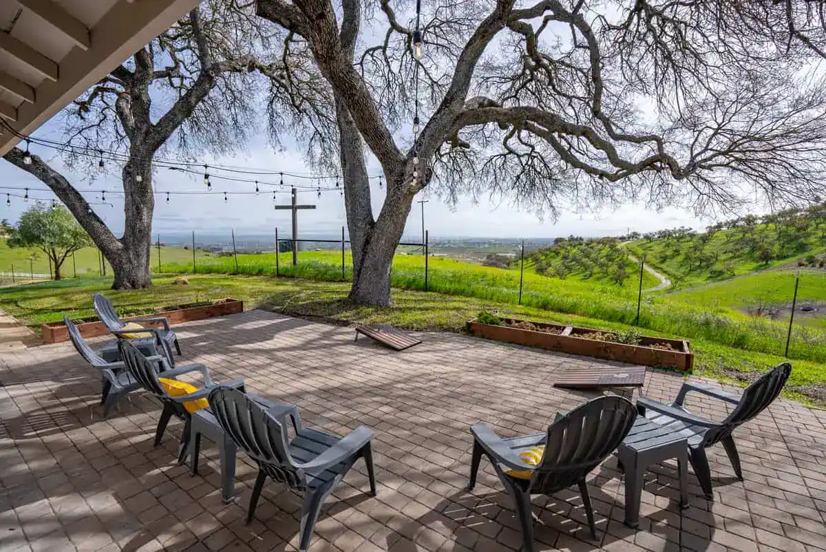 This exclusive vacation rental in Paso Robles showcases panoramic vistas of rolling vineyard-covered hills, blossoming almond orchards, and ancient olive groves that create an ever-changing backdrop from sunrise to sunset. With its year-round heated pool, exposed-beam great room, and proximity to over 200 Paso Robles wineries, Vina Vista provides the perfect basecamp for wine enthusiasts and families seeking an unforgettable wine country escape.